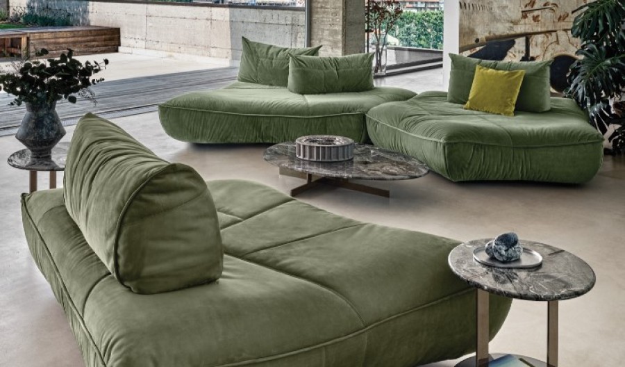 «Vous ne le verrez pas ailleurs, en tout cas pas pour l’instant», assure Eric Solovici, décorateur d’intérieur à La Conversion(VD). Grande tendance du Salon du meuble de Milan 2019, le nouveau concept de canapé amovible se décline au gré de nos envies de confort. Du modèle entrée de gamme chez Home Salons au coup de cœur de notre invité: le torride Night Fever dessiné par Giuseppe Vigano pour Arketipo Firenze. L’idée? Des éléments d’assise ou de couchage et des dossiers-coussins amovibles. «C’est un canapé qui sort de l’ordinaire en offrant des possibilités de configurations informelles et très conviviales.